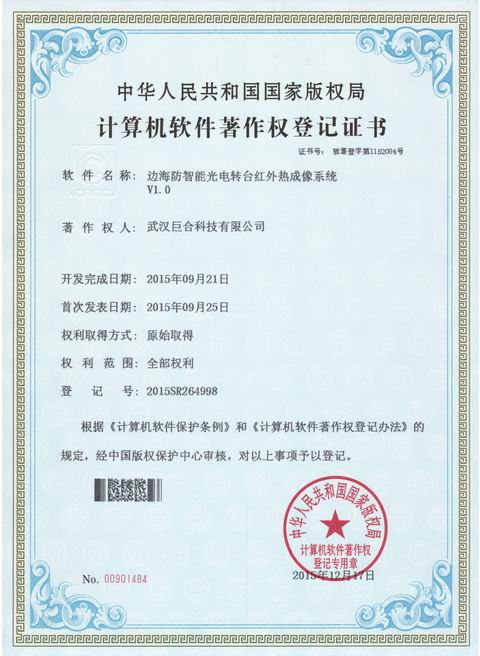 武漢巨合科技有限公司獲得邊海防智能光電轉(zhuǎn)臺軟、硬件專利